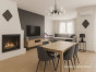 L'intérieur se compose d'une entrée, d'une cuisine indépendante qui peut être ouverte sur le salon-séjour, donnant un plus grand espace de vie, un accès à la terrasse intimiste permet de profiter aisément d'une partie de l'extérieur.