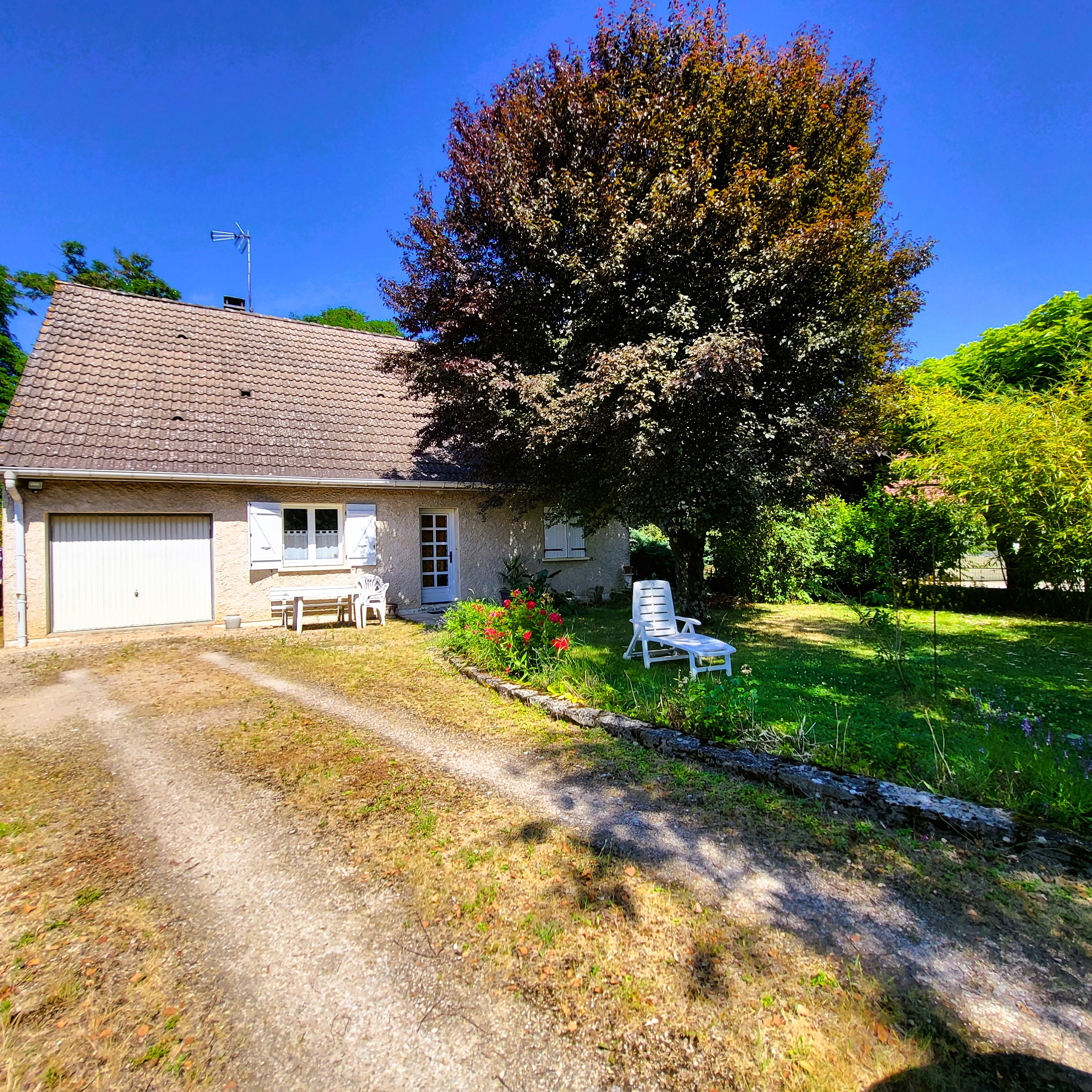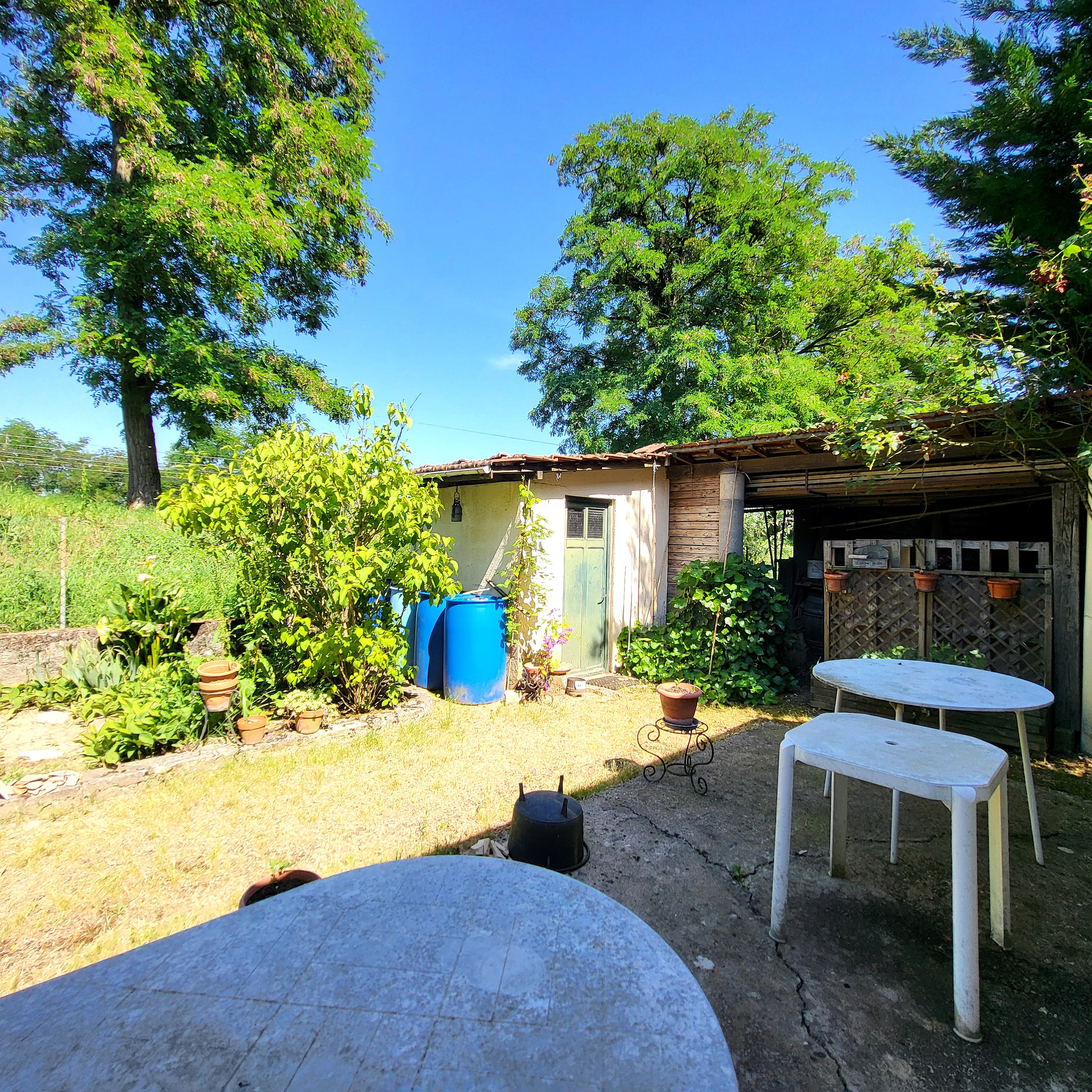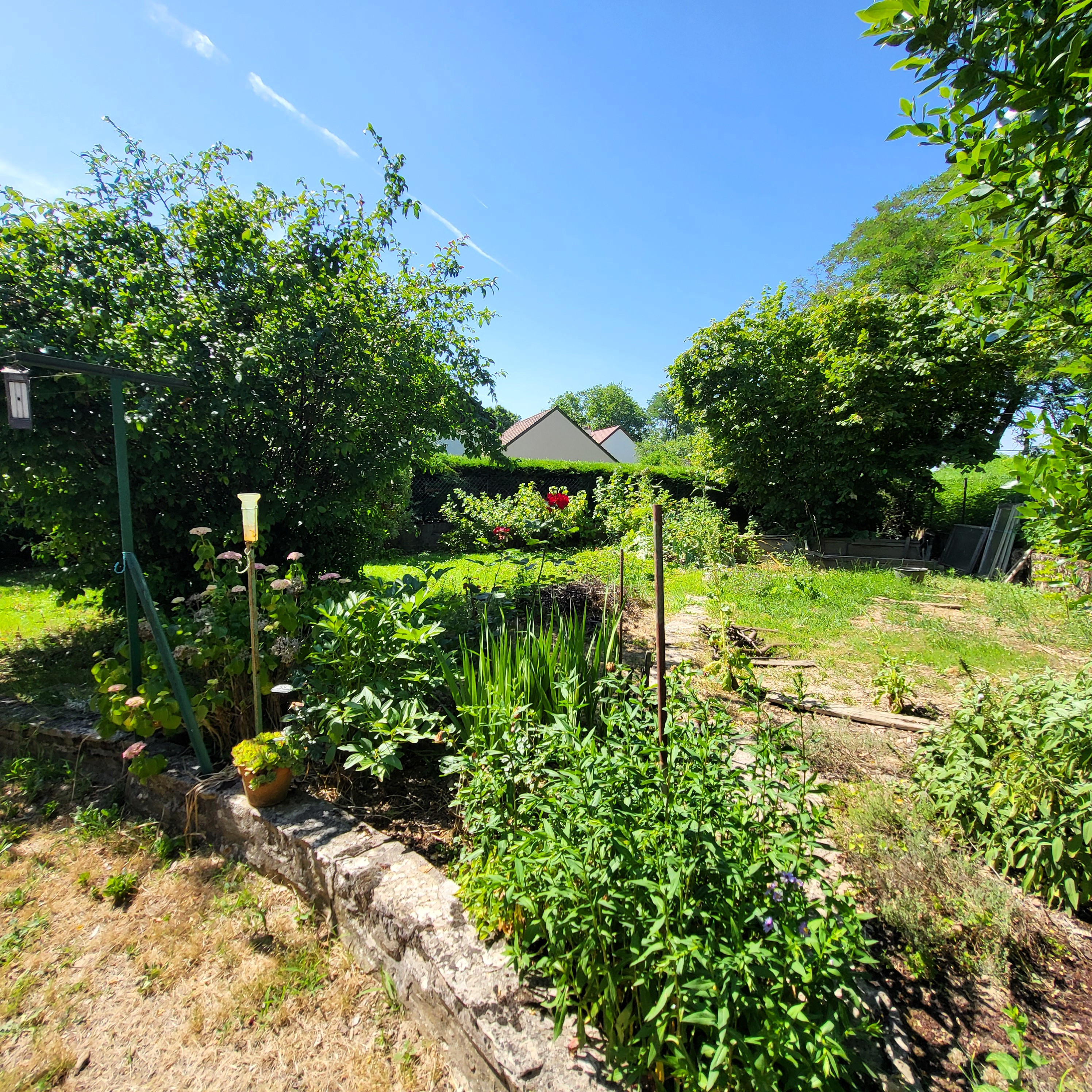 L'extérieur clos est très agréable entre arbres généreux et fleurs écloses au fil des saisons.